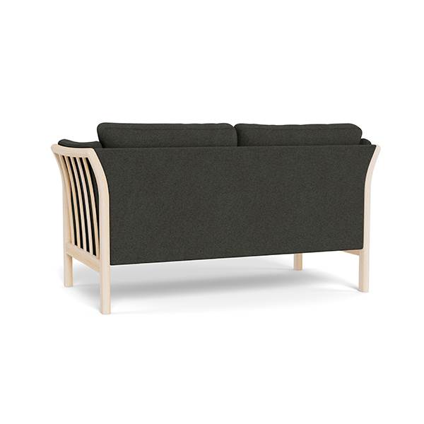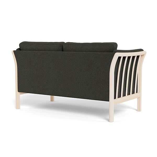 Asmara sofaen er udstyret med en smuk gavl med tremmer i sæbebehandlet bøg, der tilfører et klassisk og let udtryk. Du kan vælge mellem to stofgrupper: Dessin 415 i 100% uld med en slidstyrke på 50.000 martindale eller dessin 123 i 100% polyester med 72.000 martindale. Sofaen fås også i læder, hvilket giver dig mulighed for at tilpasse udtrykket til din personlige stil.