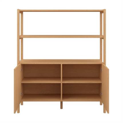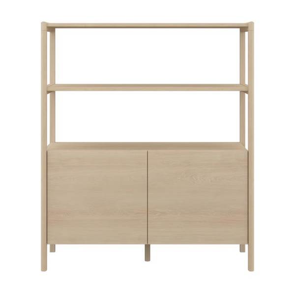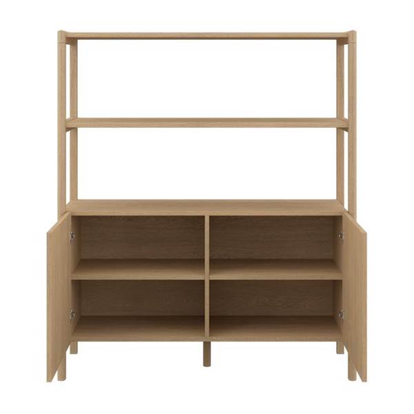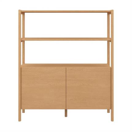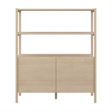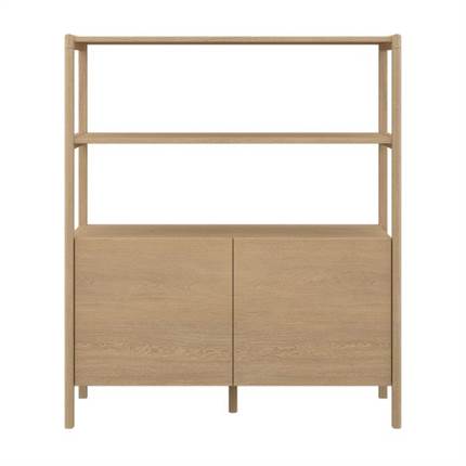 SM#712 reol er en stilfuld og funktionel opbevaringsløsning, der kombinerer et tidløst design med gennemtænkt indretning. Reolen er fremstillet i finer, hvilket giver et smukt og harmonisk udtryk, hvor træets naturlige struktur træder elegant frem.
