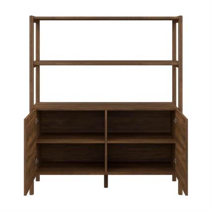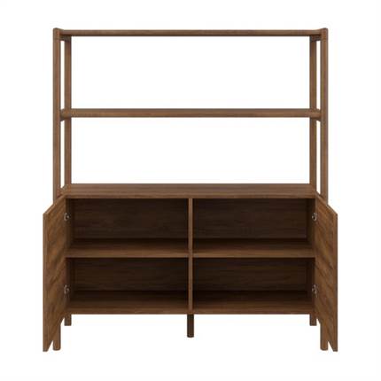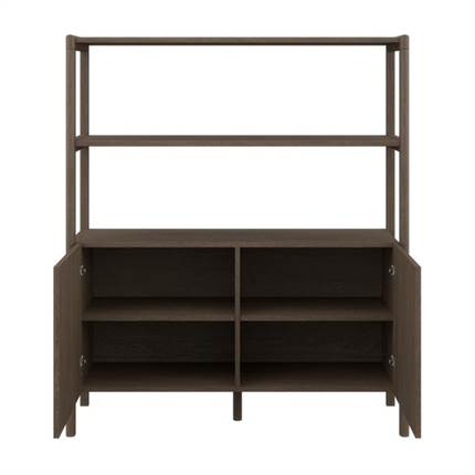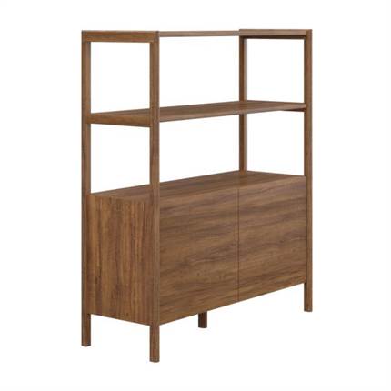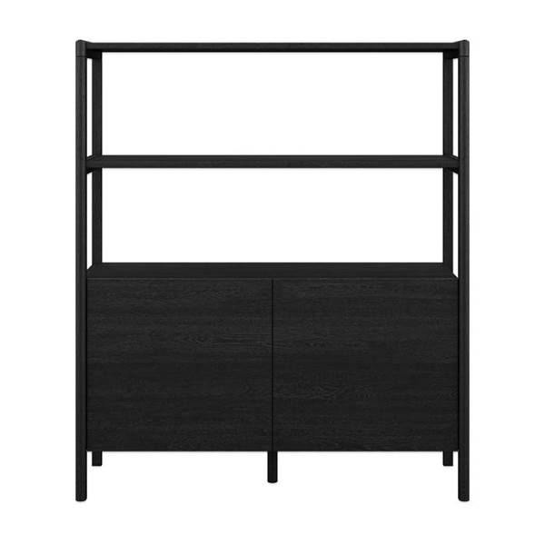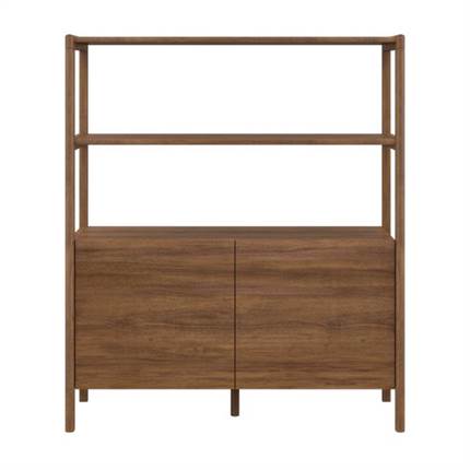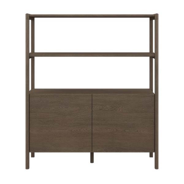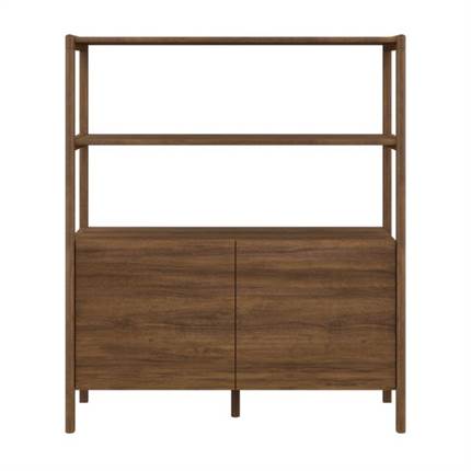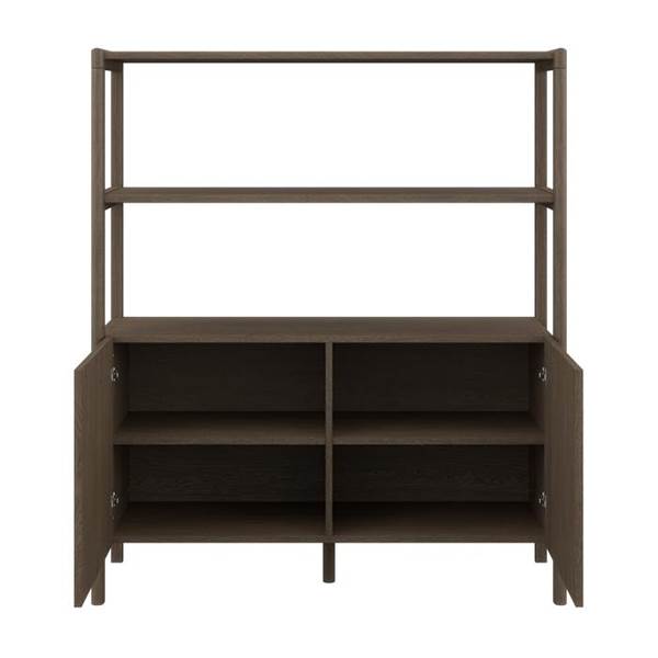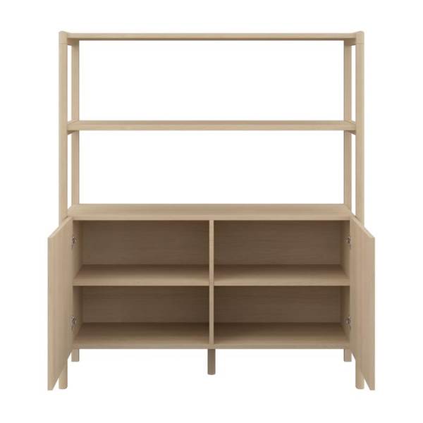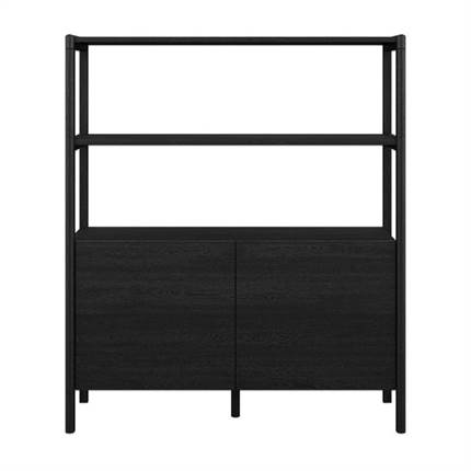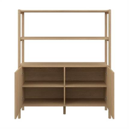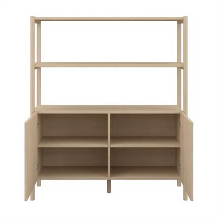 Med målene 120 cm i længden, 140 cm i højden og 45 cm i dybden tilbyder reolen god opbevaringsplads uden at virke dominerende i rummet. De to trædøre skjuler praktisk opbevaring bag fronten, mens de to indvendige hylder giver en overskuelig og funktionel opdeling. Derudover har reolen to åbne hylder, som er ideelle til bøger, dekorationer eller personlige genstande, der fortjener en synlig plads.