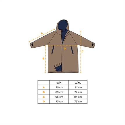 North vinterbadekåbe er ikke kun beregnet til vinterbadning, men fungerer også som et komfortabelt alternativ til et varmt tæppe i en række forskellige situationer. Den er ideel til at give varme efter en frisk dukkert, på vej til og fra træning eller som et behageligt lag på caféen eller til udendørs arrangementer på kølige dage. Efter vinterbadning sikrer North øjeblikkelig varme, når den bæres over våd badedragt eller håndklæde, samtidig med at det bløde fleecefor føles behageligt mod huden. Den rummelige pasform gør det muligt at bære kåben over let overtøj. Det vindtætte og vandafvisende ydermateriale beskytter mod let vind og fugt, hvilket gør kåben både praktisk og behagelig, når ekstra varme er nødvendig. North er kompakt nok til at opbevares i bilen, så den altid er tilgængelig, når behovet for varme opstår. Kåben er desuden udstyret med justerbare manchetter, lynlåslommer og en foret hætte. Vindtæt og vandafvisende ydermateriale med fleecefor