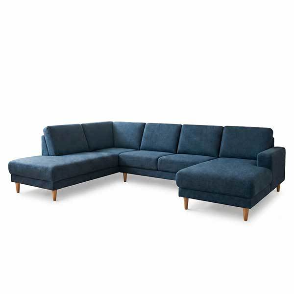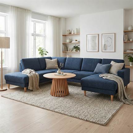 Dejlig rummelig U-sofa i flot mørkeblåt stof