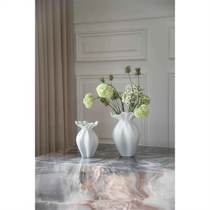 Skabt i samme ånd som Nellie kanden, er denne håndlavede keramikvase et ægte kunstværk. Vasen udstråler elegance og modernitet med sin glatte overflade og bløde, bølgende linjer. Inspireret af naturens skønhed har vasen en organisk formet åbning, der tilføjer et unikt touch.