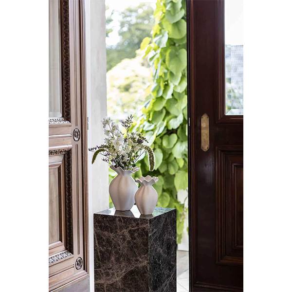 Som med Nellie kanden, er denne vase resultatet af en stolt håndværkstradition, der er blevet videregivet gennem generationer. Vi arbejder tæt sammen med vores producenter for at kombinere moderne design med traditionelle teknikker. Håndlavet med omhu, bærer hver vase sine egne naturlige variationer og små ’ufuldkommenheder’, hvilket gør dem til unikke skatte, som vi værdsætter dybt.