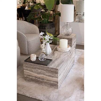 Phantom bordet har 4 sider og en top. Bordet er således åben i bunden, og er derfor ikke justerbar. Bordet er et naturprodukt, som betyder at hvert bord har sit eget unikke design - det betyder at hver marmorplade er forskelligt i udtryk.