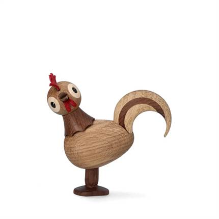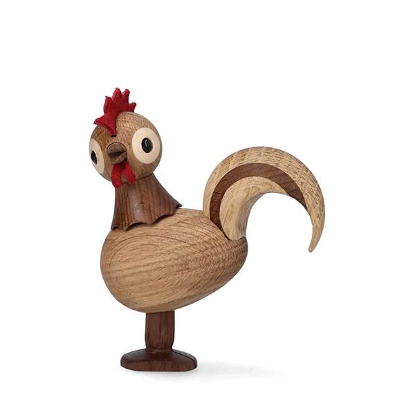 Rise hanen fra Spring Copenhagen er en dekorativ træfigur, der tilfører rummet et indbydende og levende præg. De afrundede træformer, den let buede hale og den røde kam bidrager til et karakterfuldt og humoristisk udtryk, som gør figuren velegnet til placering på en hylde, et køkkenbord eller som del af en stilfuld samling.