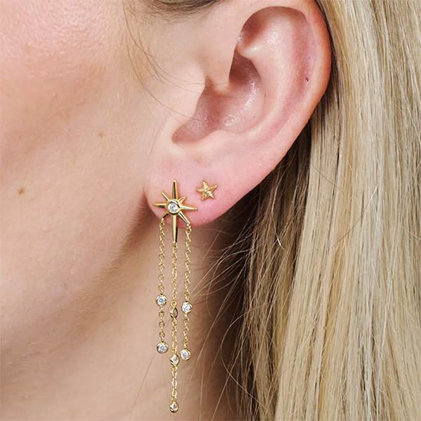 Winkle er en elegant og markant ørering prydet med klare zirkonia-sten, der skaber et strålende og raffineret udtryk. Den lange silhuet gør den særligt velegnet til festlige lejligheder og formelle outfits, men den kan også tilføre et diskret glimt af glamour til hverdagsudtrykket.