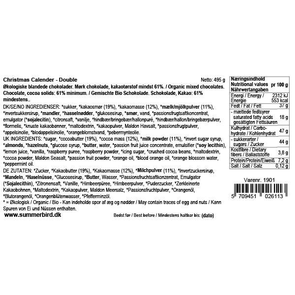 Årets klassiske julekalender med sølvmotiv er inspireret af det ikoniske tapet, der pryder samtlige af vores Summerbird Chocolaterier. Julekalenderen indeholder både udsøgte chokoladebarer og elegante fyldte chokolader.