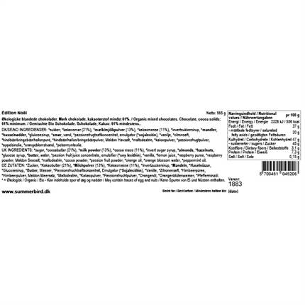 Indholdet af Édition Noël julekalenderen byder på et varieret udvalg af Summerbirds mest ikoniske chokolader. Her finder du raffinerede chokoladebarer, der er skabt med passion og dygtighed, samt udsøgt marcipan lavet på stenvalsede middelhavsmandler og overtrukket med mørk Amazonas-chokolade på 61 %. De fyldte chokolader er nøje udvalgt for at forkæle smagsløgene med delikate, komplekse og velafbalancerede smage, som er karakteristiske for Summerbirds eksklusive sortiment.