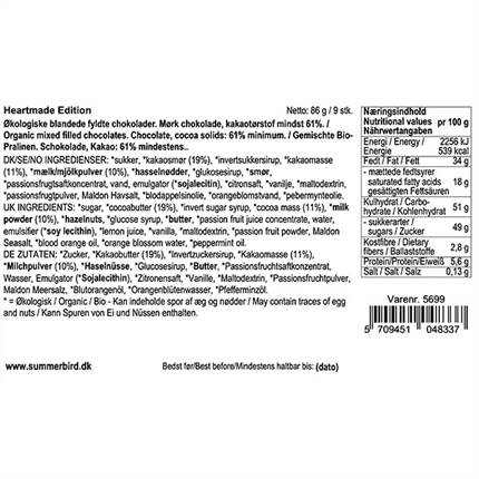 Forside › Isenkram › Gaveidéer › Valentinsdag Nyhed Summerbird Heartmade Edition På lager 138,00 kr. Antal Læg i kurv Få et tilbud Gratis fragt over 499 kr. Prisgaranti 10.000 m2 bolighus Mængde 86 g Varenr.: 6400440 Ean: 5709451048337 Lækker gaveæske fra Summerbird Heartmade er en eksklusiv hyldest til gastronomi og kompromisløs kvalitet. Æsken indeholder tre forskellige varianter af Summerbrids raffinerede chokoladehjerter - Passion, Mint og Fleur d’orange. Har du brug for hjælp? Kontakt vores kundeservice på: 98 93 61 55kundeservice@ecmh.dk Køb mere - Spar mere Skal du handle stort ind? Så send os en uforpligtet forespørgsel Udfyld formular