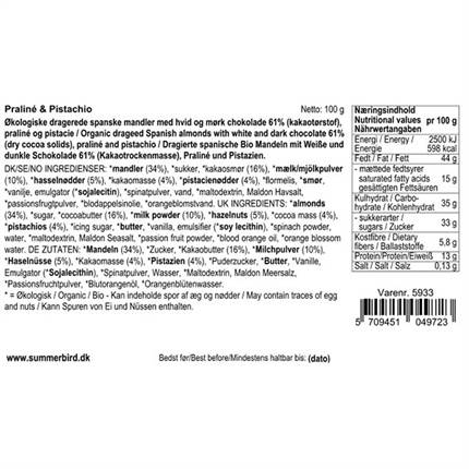 Forside › Isenkram › Delikatesser Nyhed Summerbird Praliné & Pistachio På lager 66,00 kr. Antal Læg i kurv Få et tilbud Gratis fragt over 499 kr. Prisgaranti 10.000 m2 bolighus Mængde 100 g Varenr.: 64000446 Ean: 5709451049723 Lækker spanske mandler med Pistacie Let ristede spanske mandler, praliné, mørk chokolade Amazonas 61%, hvid chokolade og revet pistacie. Har du brug for hjælp? Kontakt vores kundeservice på: 98 93 61 55kundeservice@ecmh.dk Køb mere - Spar mere Skal du handle stort ind? Så send os en uforpligtet forespørgsel Udfyld formular