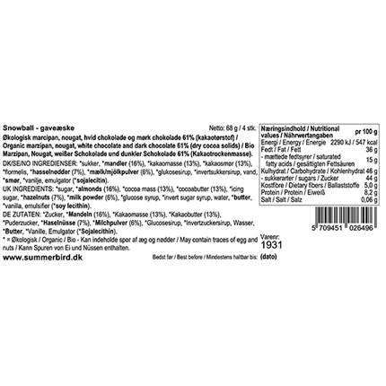 Forside › Isenkram › Jul › Julekalender & juleslik Nyhed Summerbird Snowball På lager 92,00 kr. Antal Læg i kurv Få et tilbud Gratis fragt over 499 kr. Prisgaranti 10.000 m2 bolighus Mængde 68 g Varenr.: 64000365 Ean: 5709451026496 Lækker snebolde fra Summerbird Snowballs udgør en udsøgt kombination af nougat og marcipan, overtrukket med den mørke chokolade Amazonas 61 % og efterfølgende drageret i vores prisbelønnede hvide chokolade, White Vanilla. Som afslutning er de nænsomt vendt i snehvidt florsukker. . Har du brug for hjælp? Kontakt vores kundeservice på: 98 93 61 55kundeservice@ecmh.dk Køb mere - Spar mere Skal du handle stort ind? Så send os en uforpligtet forespørgsel Udfyld formular