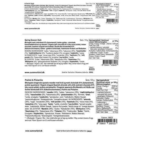 - 5 classic eggs - Elegant gaveæske med 5 forskellige varianter af summerbirds mest populær økologiske påskeæg.