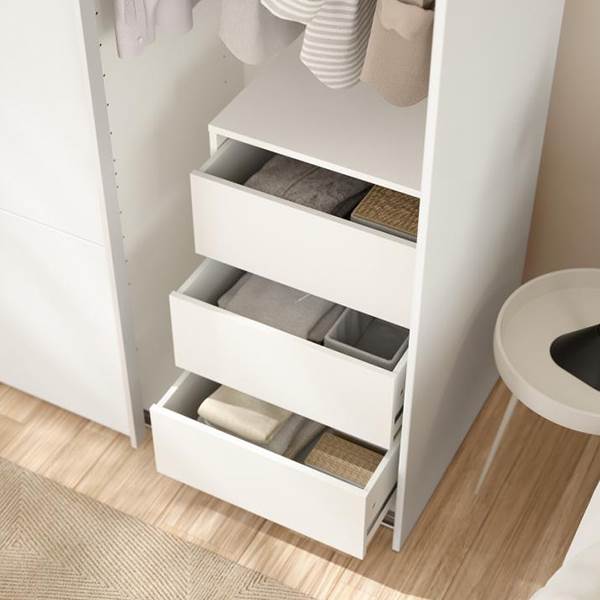 Denne skuffeindsats fra Tvilum giver dig tre rummelige skuffer, der gør det nemt at organisere tøj, tilbehør eller andre småting i dit Bergamo garderobeskab. Kan både bruges i Bergamo garderobeskabene i 140x220 cm og 180x200 cm.