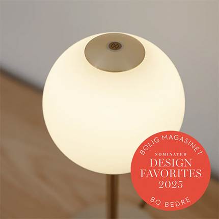 Opalglassets globe sikrer en blød og behagelig lysfordeling, som bidrager til en rolig og afbalanceret atmosfære. Lampen er udstyret med en diskret dæmpningsfunktion placeret øverst, hvilket gør det muligt at tilpasse lysstyrken og skabe forskellige stemninger – fra funktionel belysning ved skrivebordet til et afdæmpet lys ved sengebordet.