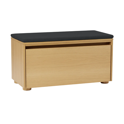 Med sine mål på H: 45 × B: 90 × D: 45 cm passer den perfekt i entréen, hvor den giver både siddeplads og plads til skoopbevaring. På børneværelset kan den nemt forvandles til en lille læsehule eller et praktisk opbevaringsmøbel, og i stuen fungerer den som en stilren tv-bænk, der diskret skjuler ledninger og elektronik for et mere organiseret udtryk.