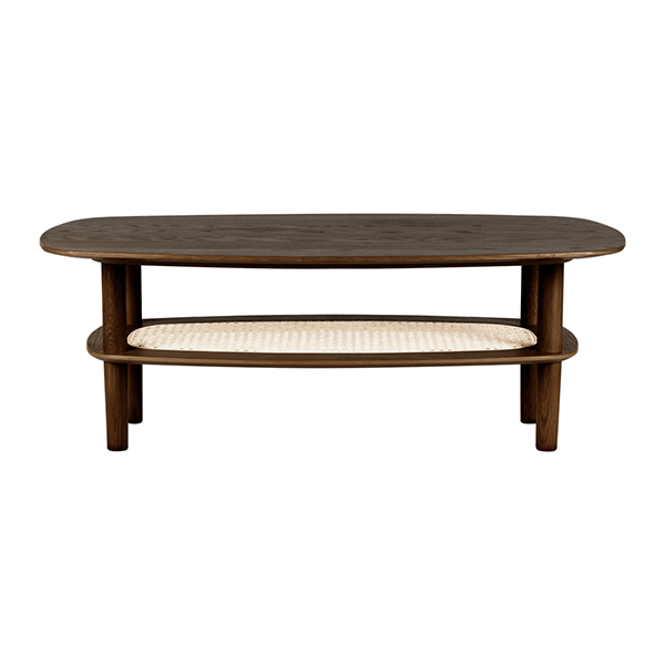 Bordet er fremstillet i massivt egetræ og har en praktisk hylde i fransk flet, perfekt til opbevaring af magasiner, bøger eller den bærbare computer. De afrundede hjørner giver et eksklusivt og let udtryk, mens de indtrukne ben øger sikkerheden for både børn og voksne i hjemmet.