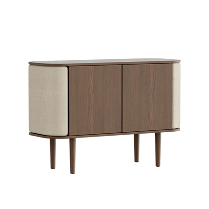 Treasures 2-dørs skabet fra Umage, designet af Jonas Søndergaard, kombinerer dansk håndværk med fleksibel funktionalitet og tidløst design. Skabet er fremstillet af egetræsfinér med justerbare sider i Horizon-stof, læder eller fransk flet, hvilket giver et blødt og taktilt udtryk, samtidig med at det tilpasser sig dine behov og din indretning.