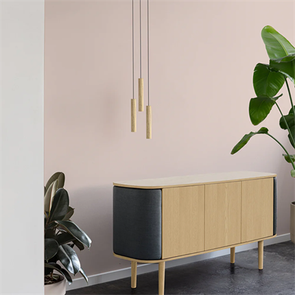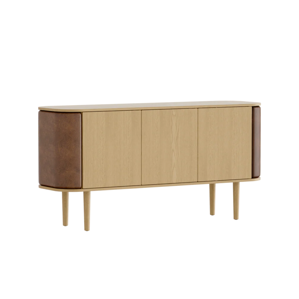 Treasures 3-dørs skab fra Umage er et elegant og fleksibelt opbevaringsmøbel, der kan tilpasses dine behov og din indretning. Skabet er lavet i smuk egetræsfinér og fås i varianterne eg, mørk eg og sort eg, mens siderne kan beklædes med forskellige farver i de 100% genanvendte Horizons-tekstiler, så udtrykket kan ændres efter stil og stemning. De justerbare sider åbnes som vinger og giver et taktilt og blødt look samtidig med, at de fungerer som perfekte små opbevaringsrum til alt fra bøger og magasiner til din yndlings cognac. I midten finder du en praktisk hylde, ideel til keramik, porcelæn og andre udvalgte favoritter. Hylden kan bære op til 15 kg, og hele skabet kan bære op til 50 kg, hvilket gør det både funktionelt og robust. Med Treasures får du et skab, der kombinerer æstetik, fleksibilitet og gennemtænkt opbevaring i ét møbel.